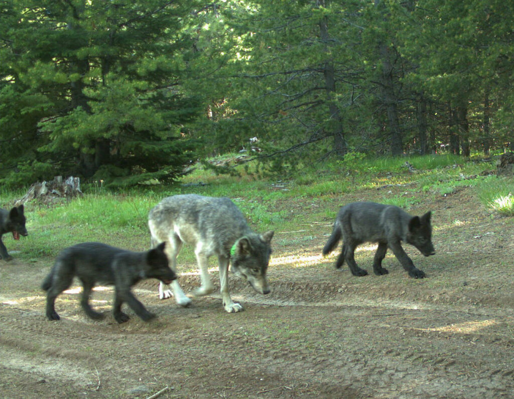 In 2021, the Bear Creek Pack produced three pups that survived to the end of the year and was counted as a breeding pair, with a minimum of six wolves in the pack.