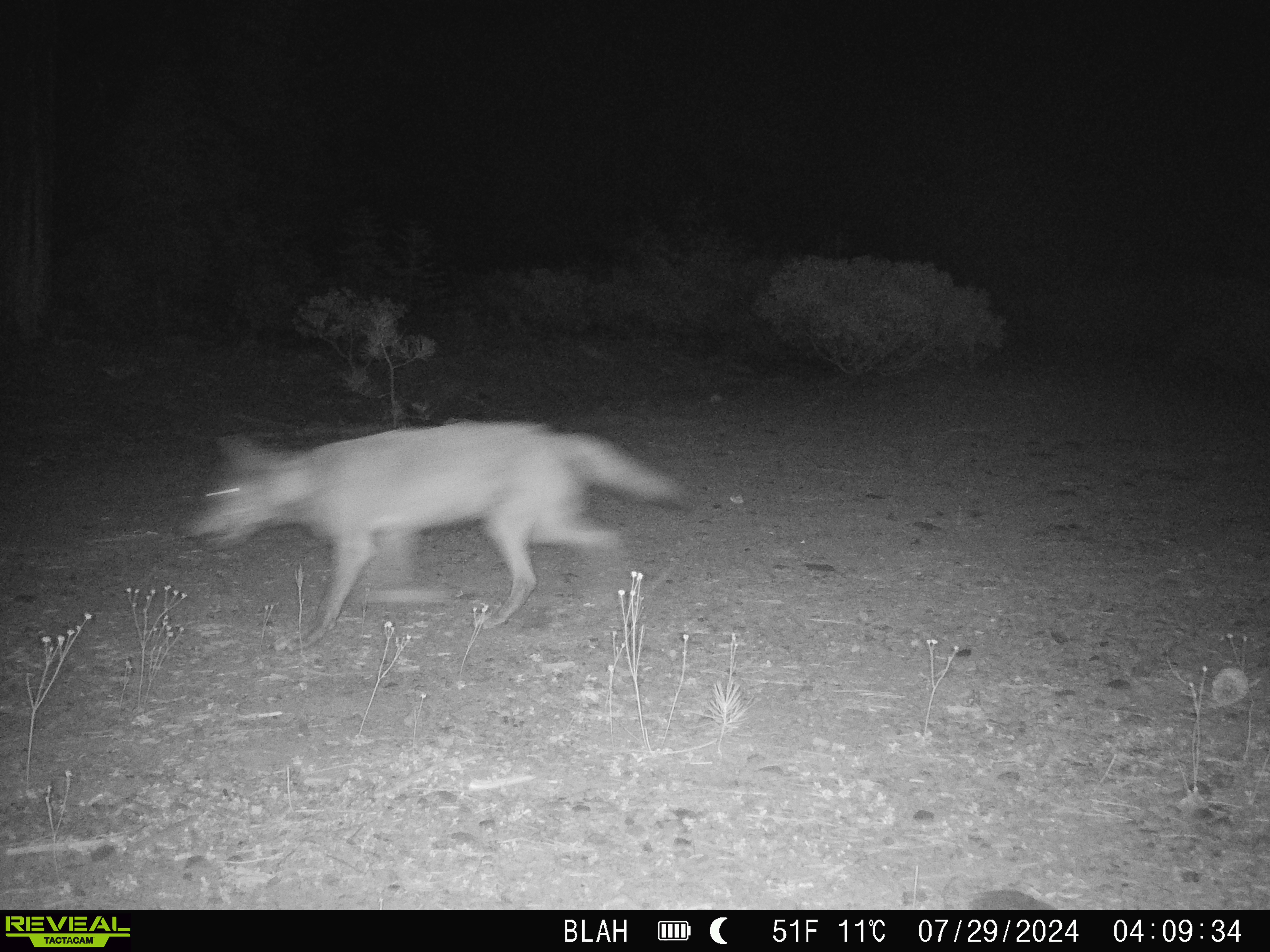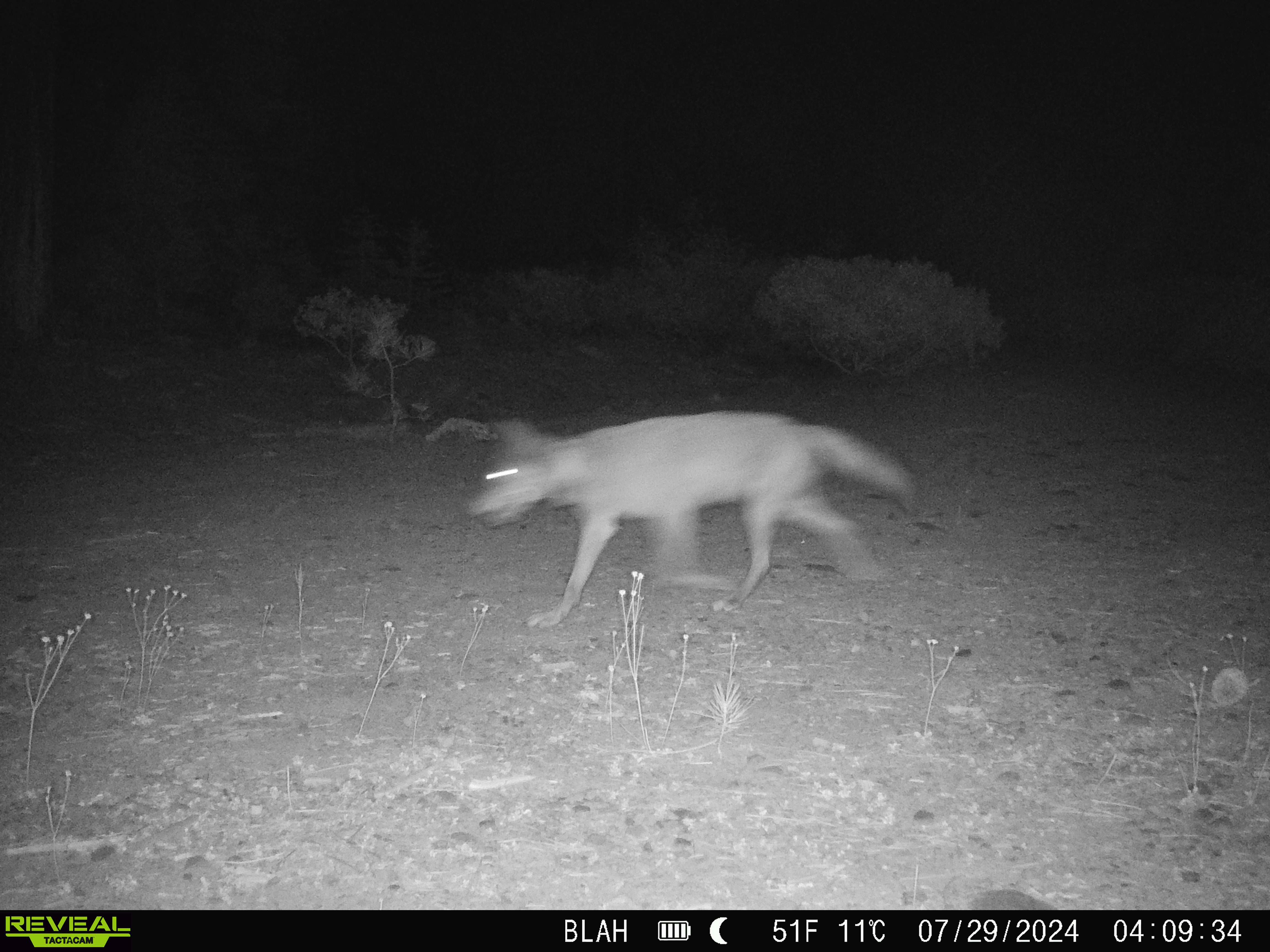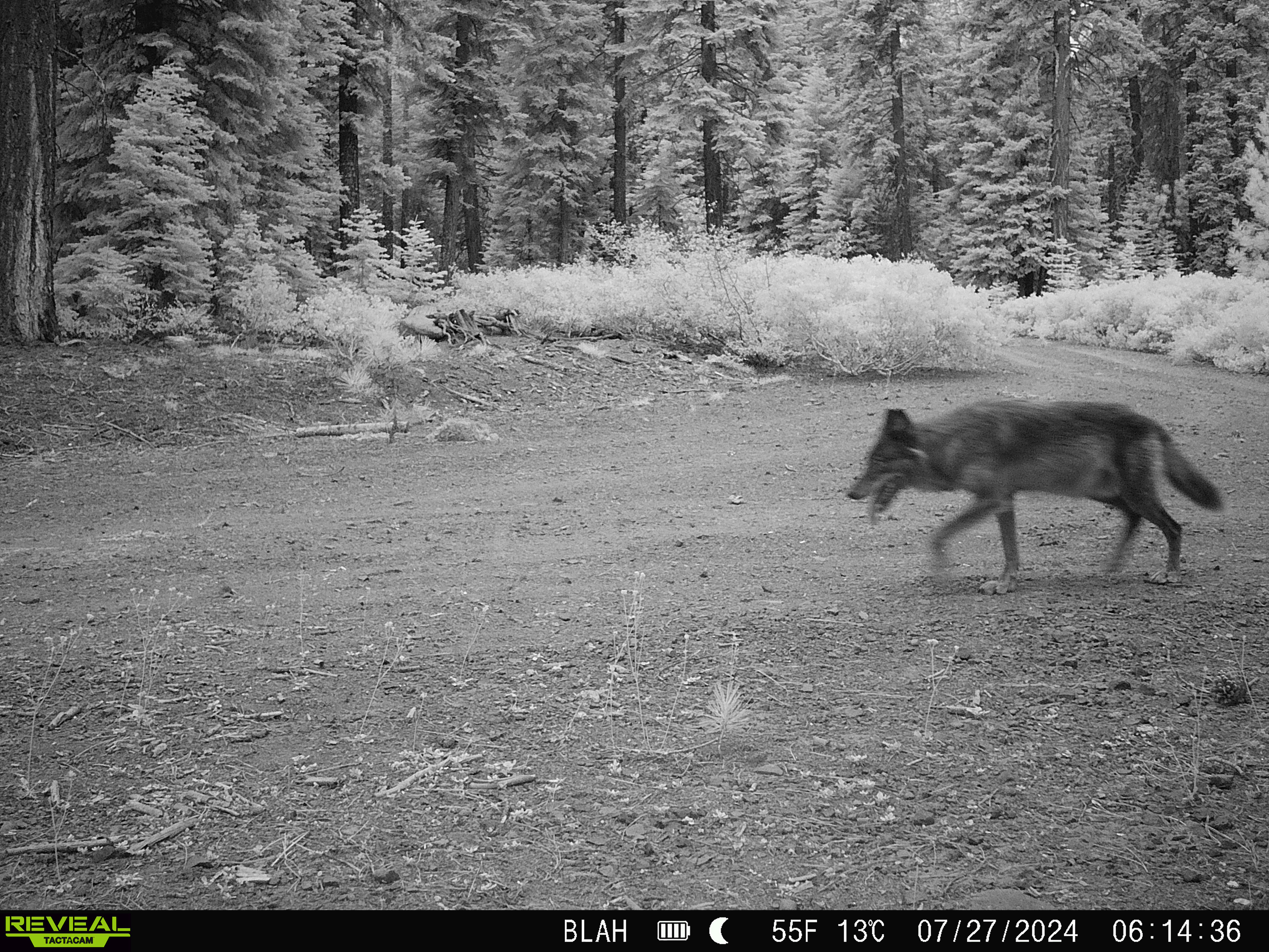 The Harvey Pack was confirmed in Lassen County in the summer of 2023 after CDFW received reports and photos from local livestock producers and USFS staff. The pack’s home range is primarily in western Lassen County, though it also extends into eastern Shasta County.