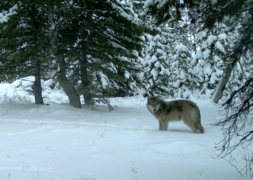 Minam Pack wolf in the Eagle Cap Wilderness, Dec 14, 2014. Photo courtesy of ODFW.