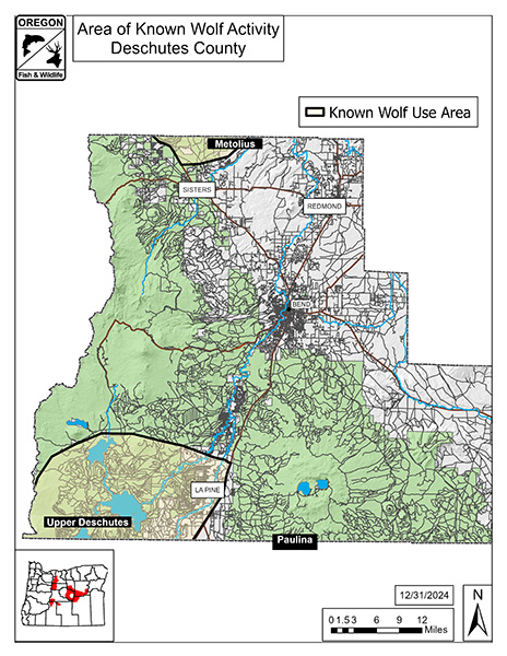 Starting in August of 2021, there have been public reports of wolf activity in the Upper Deschutes wildlife management unit (Deschutes and Klamath Counties), with one wolf counted in the 2021 annual count.