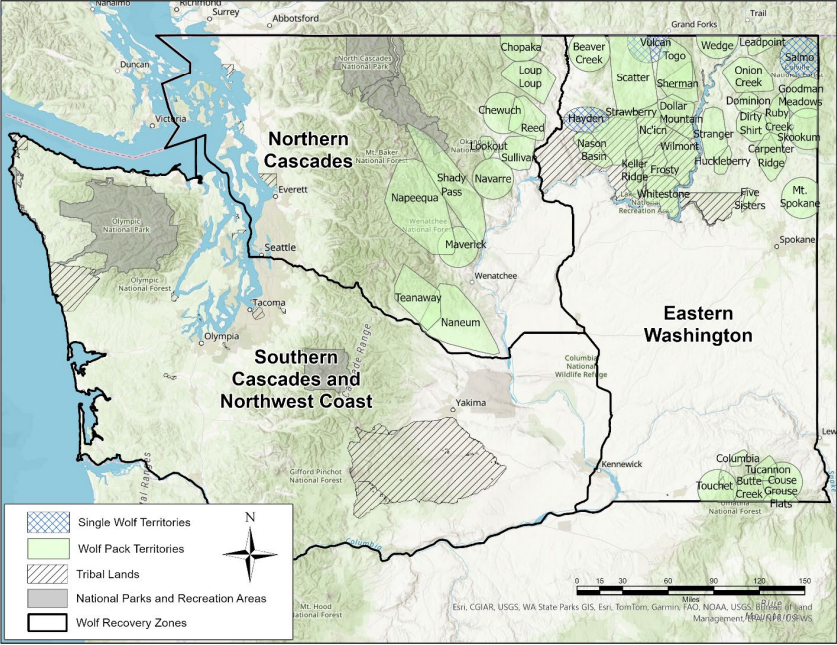 Washington state is currently home to 43 known gray wolf packs with a minimum count of 230 wolves statewide.